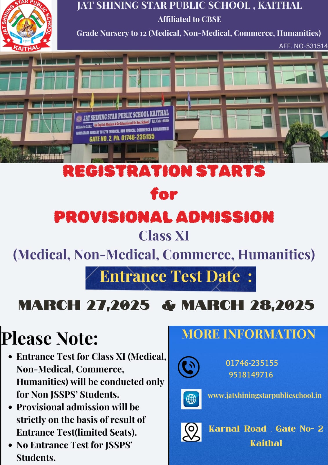Admissions open for the session 2025-2026 from Grade Nursery to IX and XI (Med, Non Med, Commerce and Humanities).